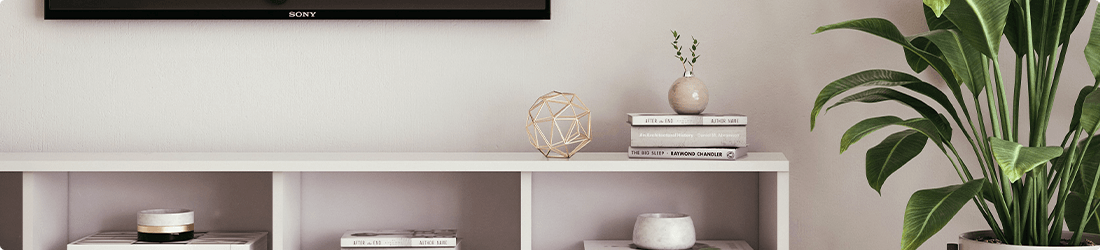 يتساءل الكثير من الناس عما إذا كان من المقبول أن يكون التلفزيون أعرض من الحامل. الجواب هو لا، احرص أن يكون الحامل أكبر، لحماية التلفزيون من السقوط. انتبه أيضًا إلى عمق الرف، حيث يجب أن يوفر مساحة كافية للتلفزيون والمعدات الإضافية. إلى جانب الأمان والسلامة، هناك ميزة أخرى يقدمها الحامل الأكبر وهي التخزين. أضف بعض متعلقات الزينة، وهي حيلة شائعة الاستخدام لدمج التكنولوجيا في التصميم الداخلي المريح.