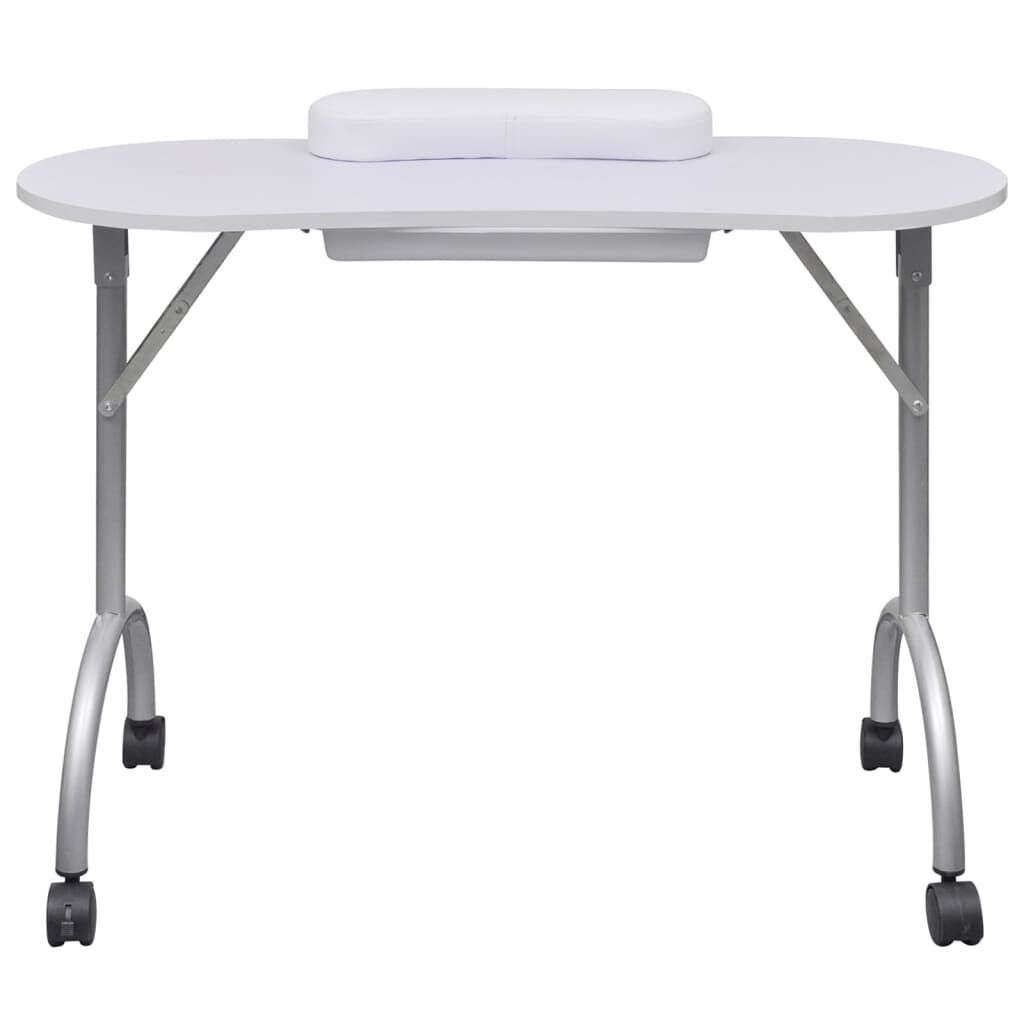 طاولة عناية بالأظافر قابلة للطي مع عجلات أبيض