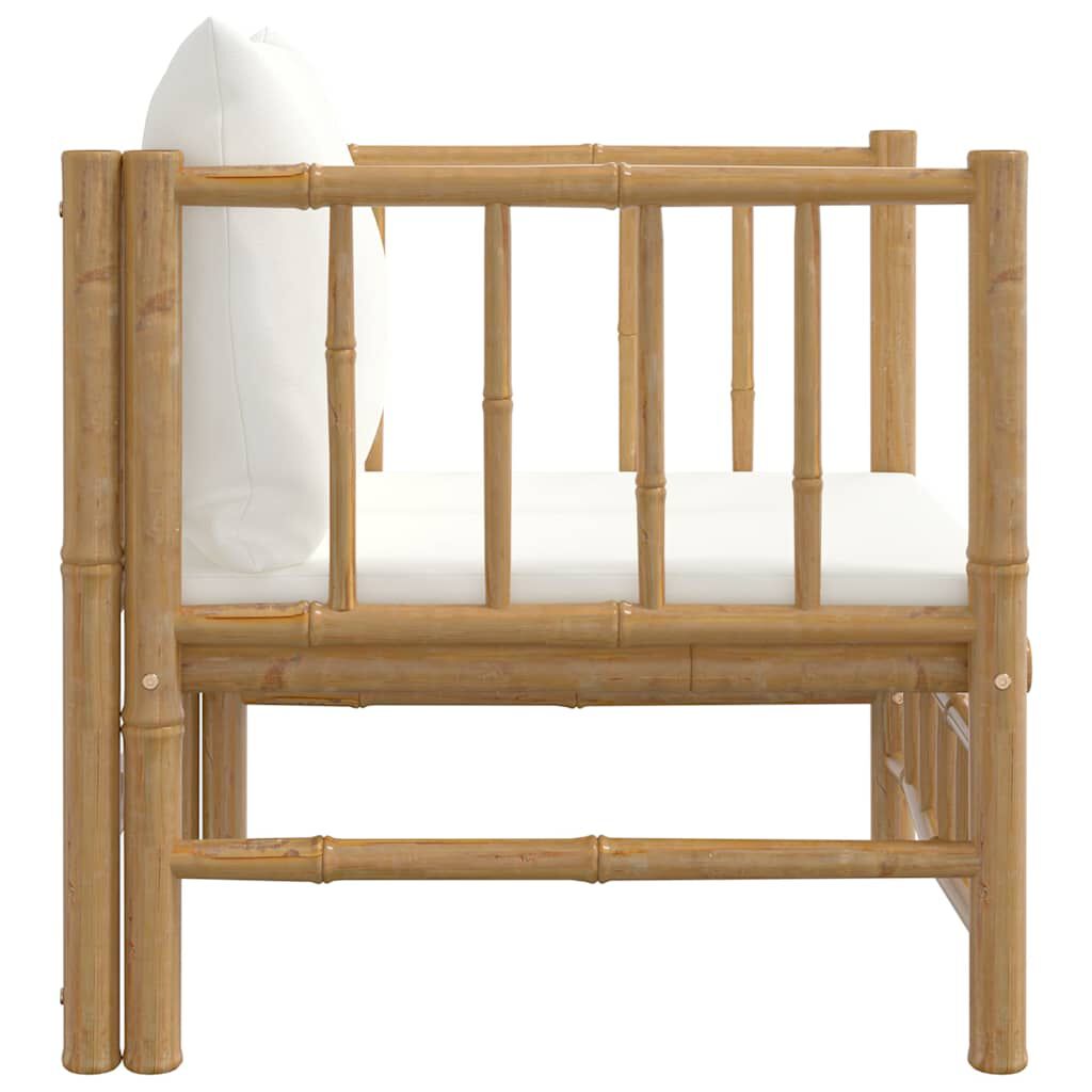 vidaXL أريكة حديقة مع وسائد أبيض كريمي خيزران