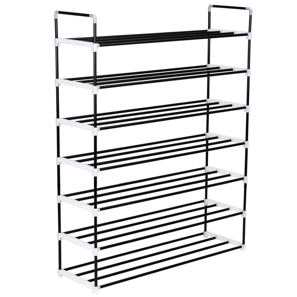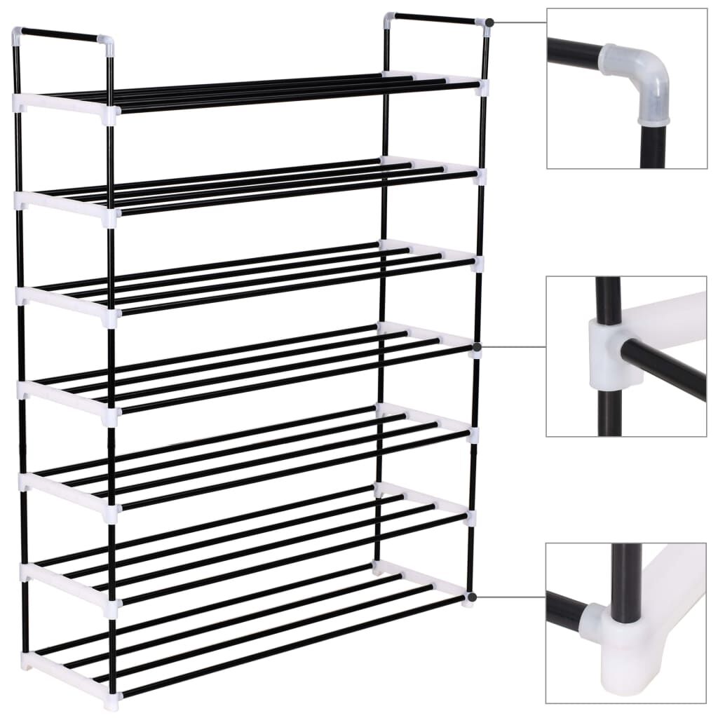 vidaXL حامل أحذية مع 7 أرفف معدن وبلاستيك أسود