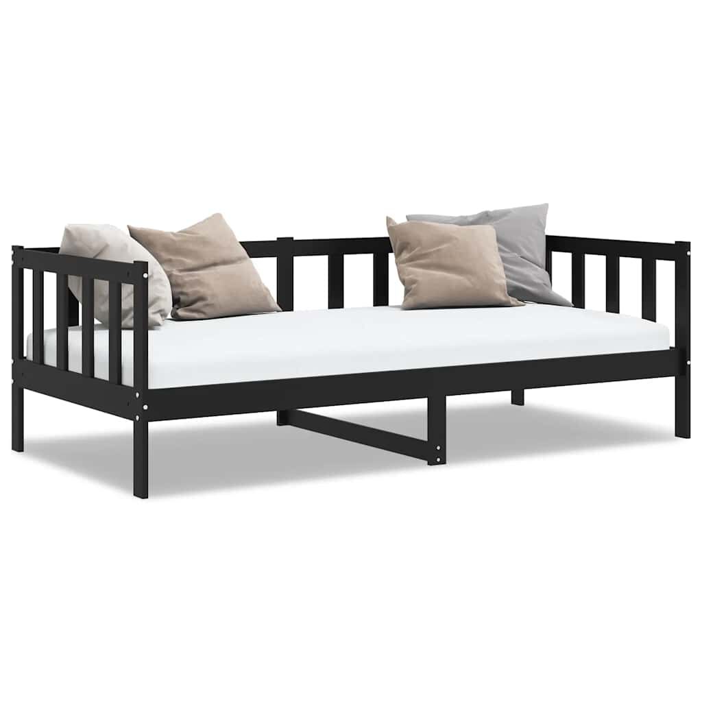 vidaXL سرير نهاري خشب صنوبر صلب أسود 90×200 سم