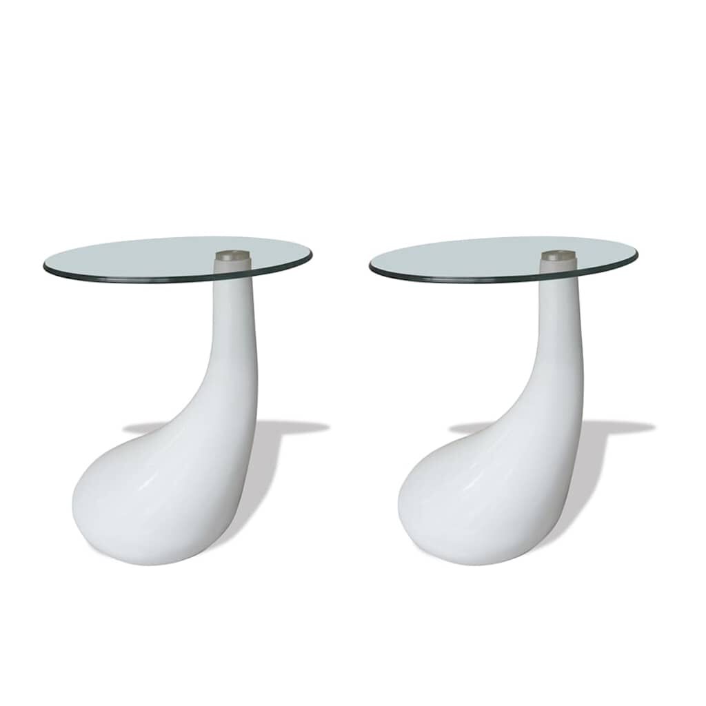 vidaXL طاولة قهوة 2 ق بسطح زجاجي مستدير أبيض لامع
