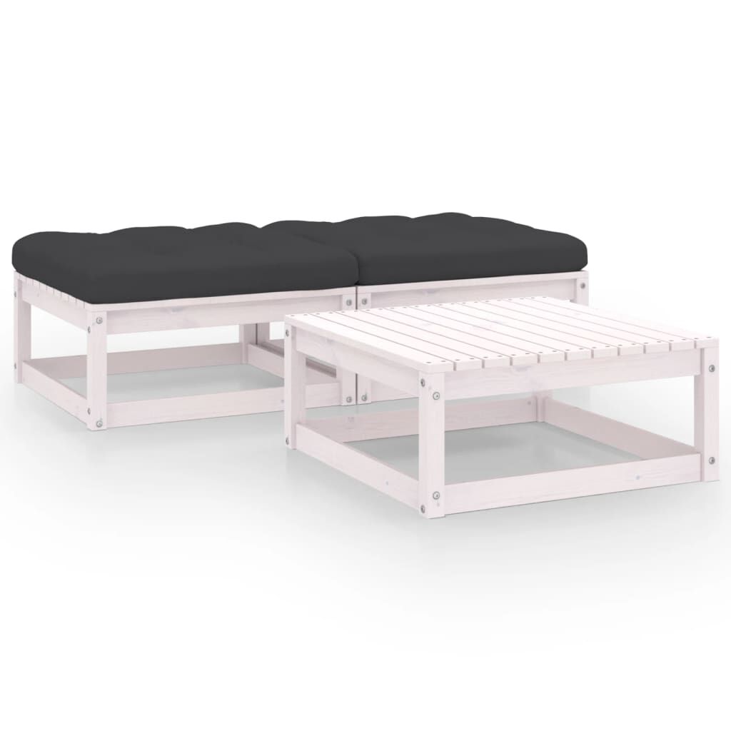 vidaXL طقم جلسة حديقة 3ق مع وسائد خشب صنوبر صلب