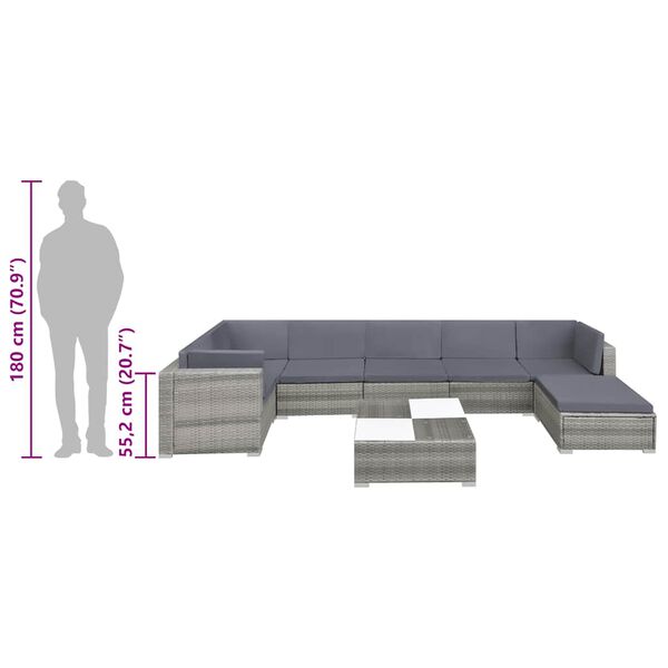 vidaXL طقم جلسة حديقة 8 قطع مع وسائد بولي روطان رمادي