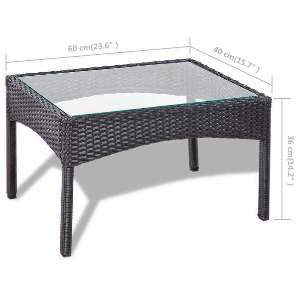 • المواد: روطان (بولي إيثيلين) PE + إطار فولاذي مطلي بالمسحوق + سطح طاولة زجاجي
