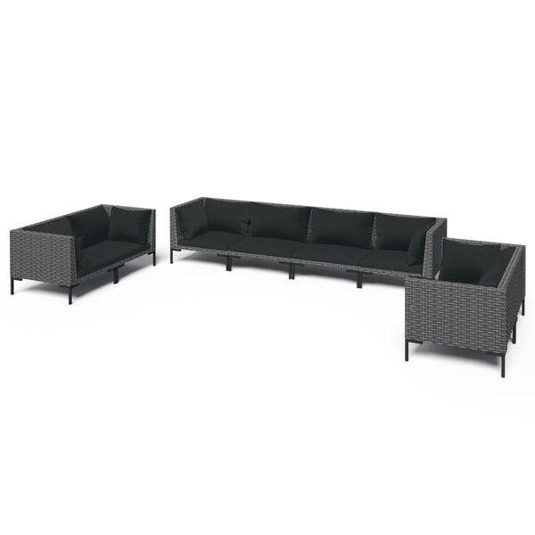 vidaXL عدد 8 قطع طقم جلسة حديقة مع وسائد بولي روطان رمادي داكن
