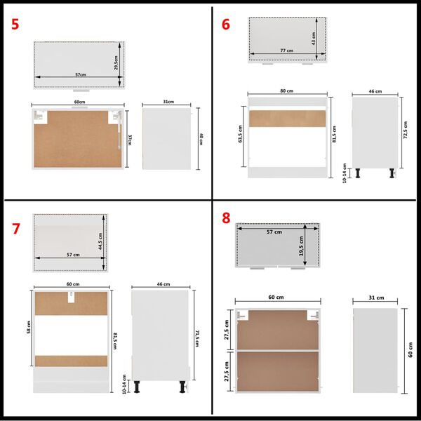 vidaXL طقم خزانة مطبخ فيدا إكس إل "ليون" من 8 قطع، مصنوع من الخشب الأبيض الهندسي