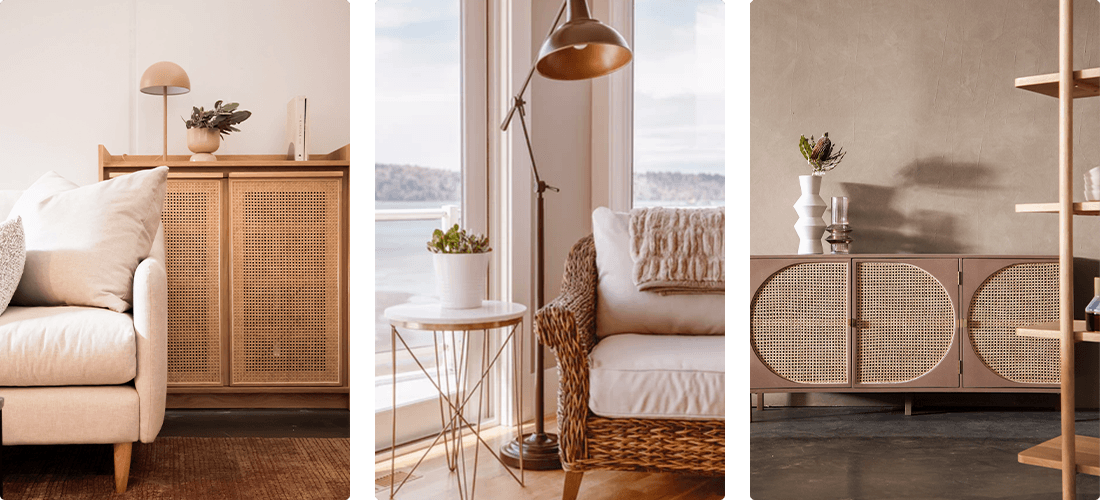 تَبرز صيحة الخوص والروطان من خلال التنوع، لأن كلٍّ منهما خفيف الوزن ومتين للغاية. الخوص نوع من النسيج بينما الروطان نفسه مادة طبيعية. في الوقت الحاضر يتم استخدام الروطان الاصطناعي بشكل أكثر شيوعًا، لكونه أكثر صداقة للبيئة. بجانب المواد الطبيعية الأخرى مثل الجوت أو البامبو، يتألق الخوص ويوفر الراحة التي تبحث عنها.