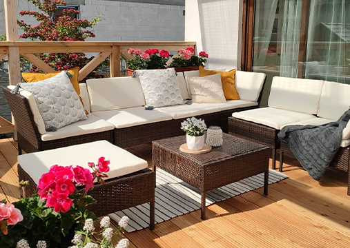 سيحول الأثاث الخارجي لدينا حديقتك لخلوة من الأناقة بمساعدة كراسي الاسترخاء المريحة وأطقم السفرة الجميلة. استرخ واستمتع بالهواء الطلق في وقت الراحة ببساطة.